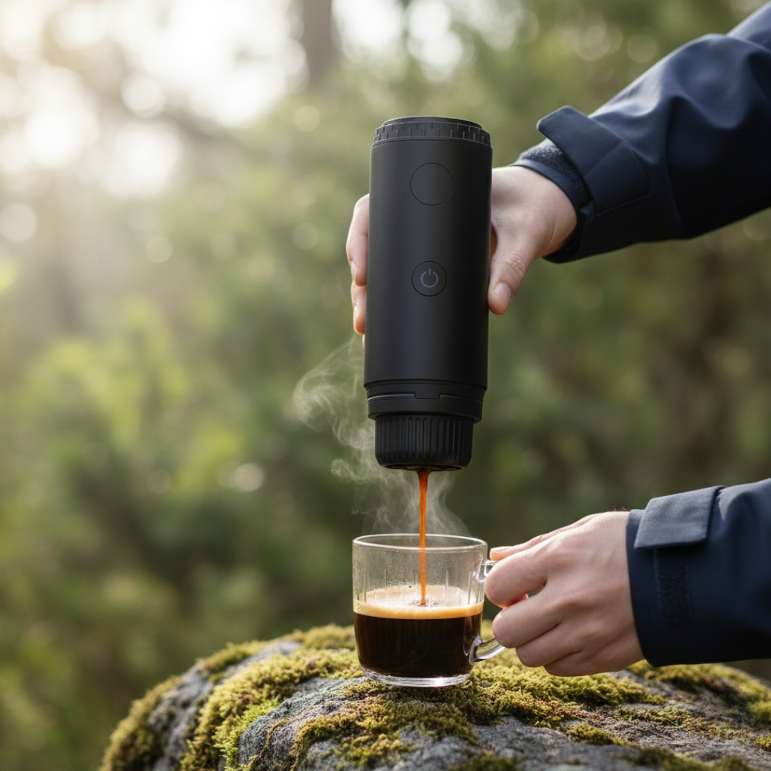Experience café-quality espresso wherever life takes you with this beautifully engineered portable espresso maker. Its powerful high-pressure extraction and sleek, travel-ready design deliver a rich, aromatic shot in seconds. Elegant, durable, and effortlessly simple. Your perfect coffee, anytime, anywhere.